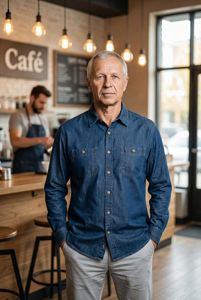 Our new men's denim oversized shirt is a perfect wardrobe addition. Wear it over your favorite T shirt or sweater. Perfect for all year wear. Soft, 2 pocket, Cotton/Polyester ( 60/40) blend fabric.