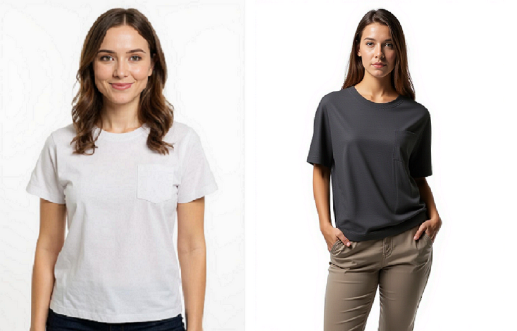 Ladies Short Sleeve, Crew Neck, One pocket,100% Cotton T Shirt in White & Black. Style 101L
